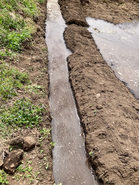 また、かなり細長い田んぼなので水をしっかりいれるため水路を作ります。